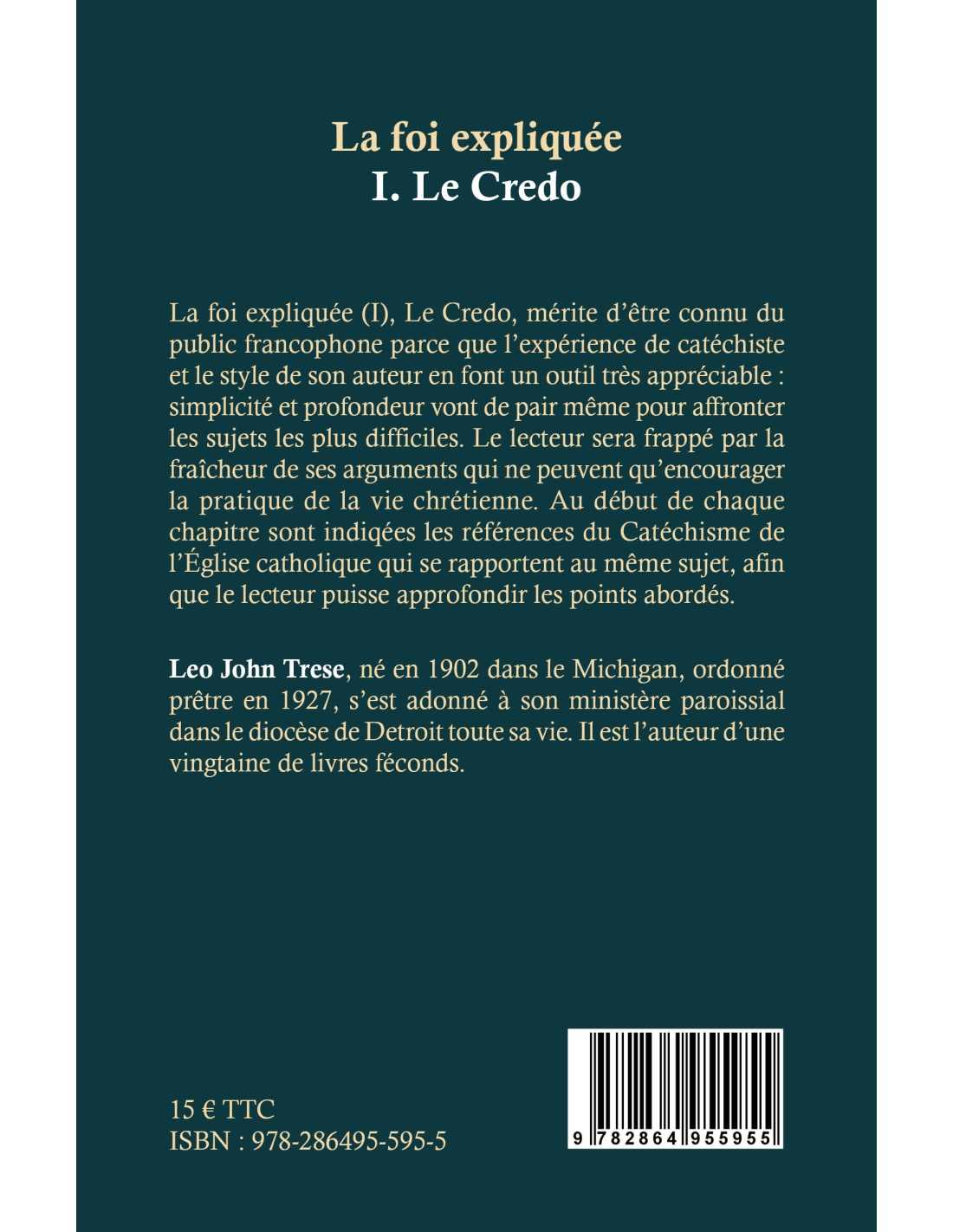 Leo J. TRESE - 1996 - Explication du Credo de l'Eglise catholique. L'expérience de catéchiste et le style de son auteur font de ce livre un outil très appréciable: simplicité et profondeur vont de pair pour affronter les sujets les plus difficiles.