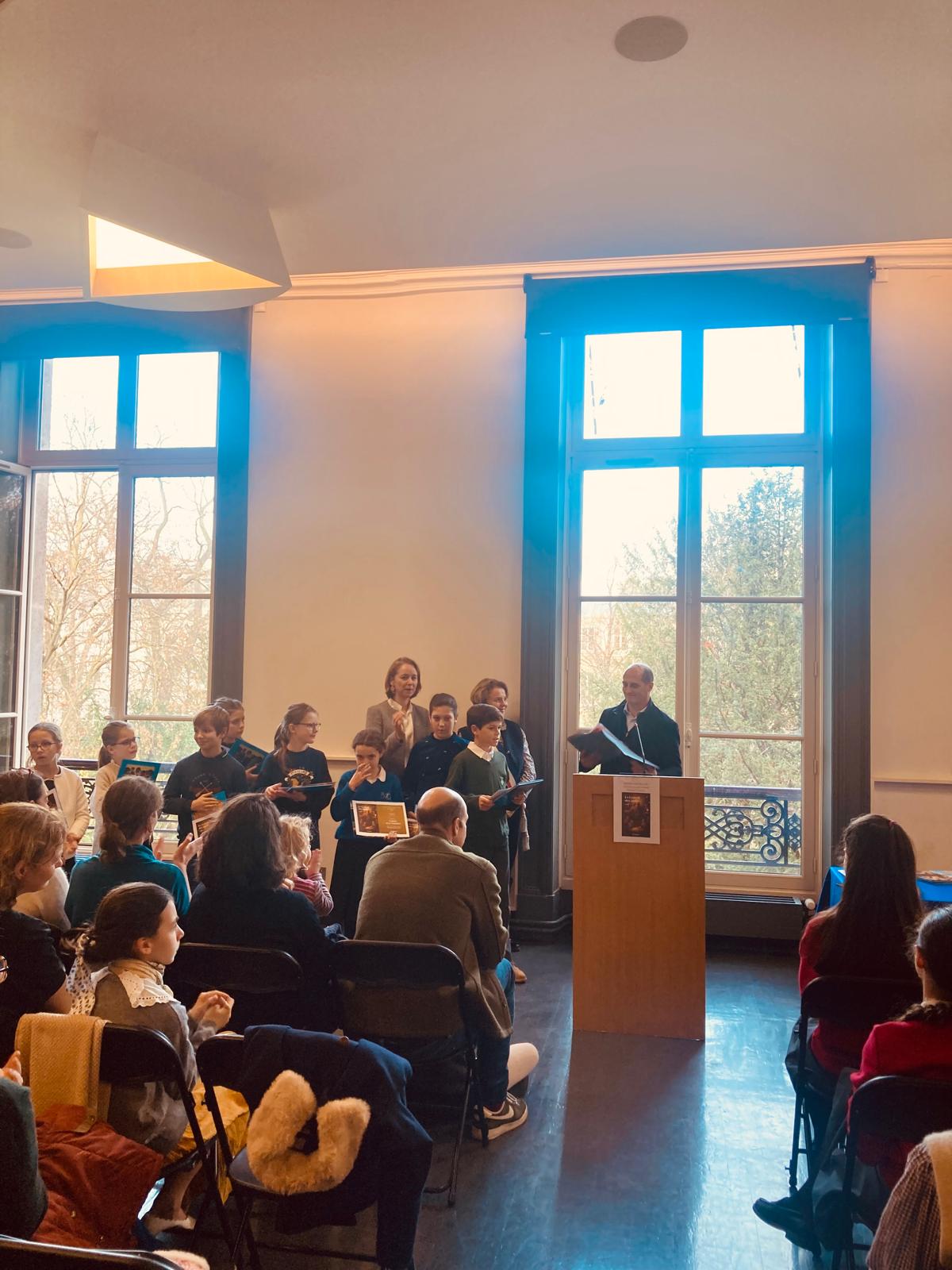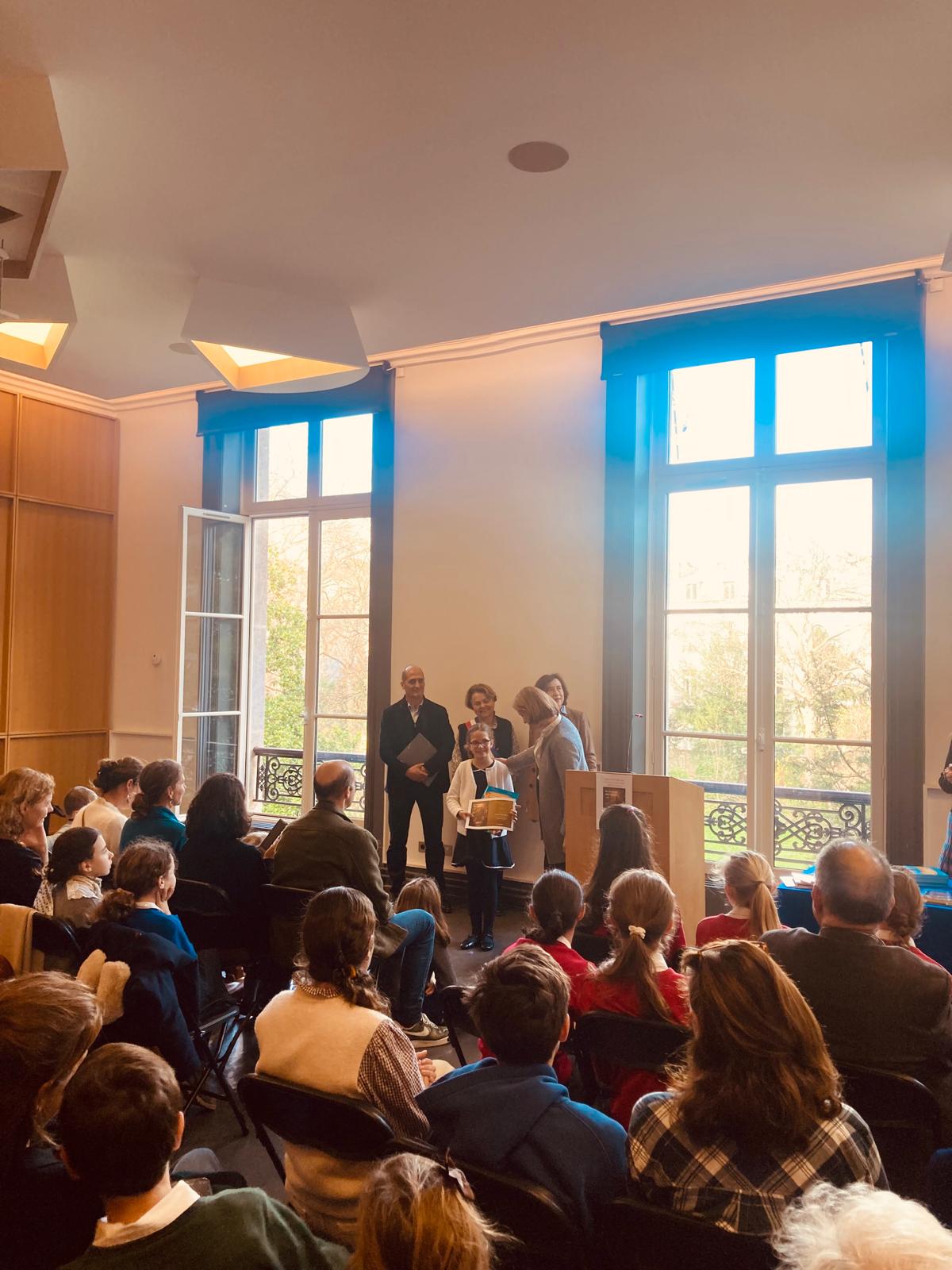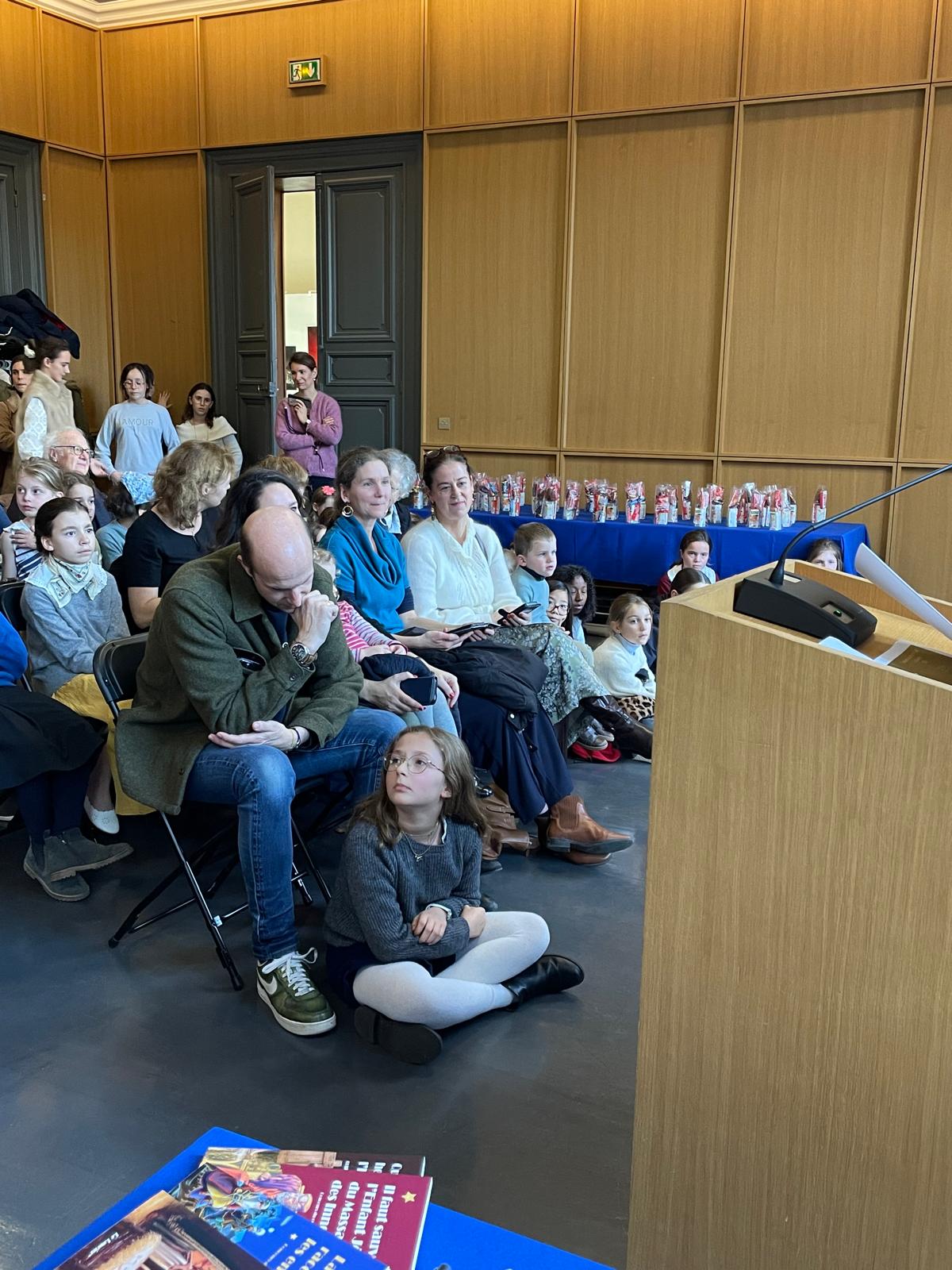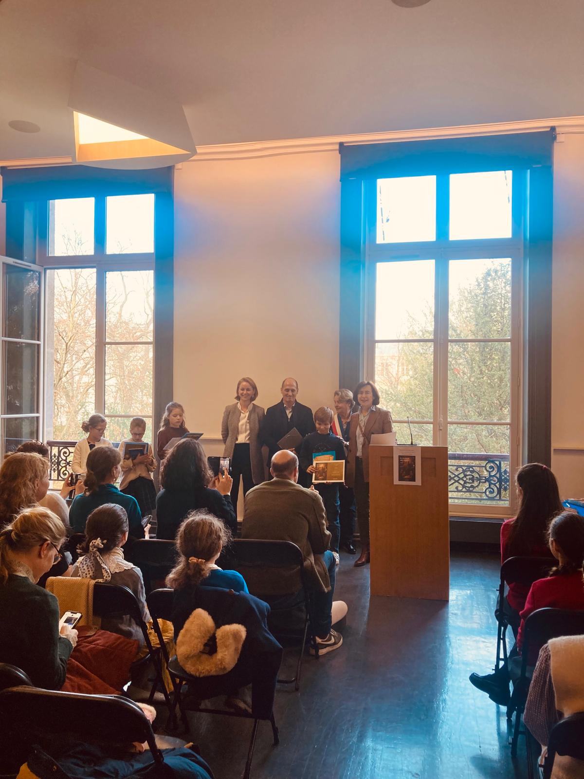 Des enfants venus d'Aix, des Pyrénées, de Versailles, de Paris, de Bruxelles sont venus accompagnés de leurs familles et professeurs. D'autres ont suivi la remise des prix par écrans interposés. L’ambiance était à la fête dans la salle, remplie d'une centaine de personnes !