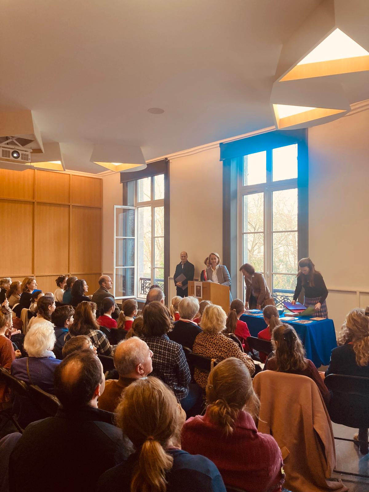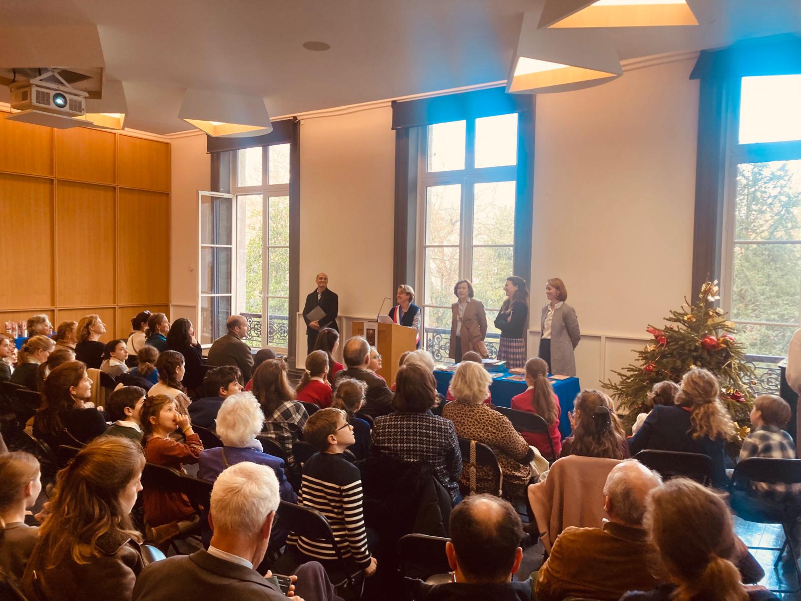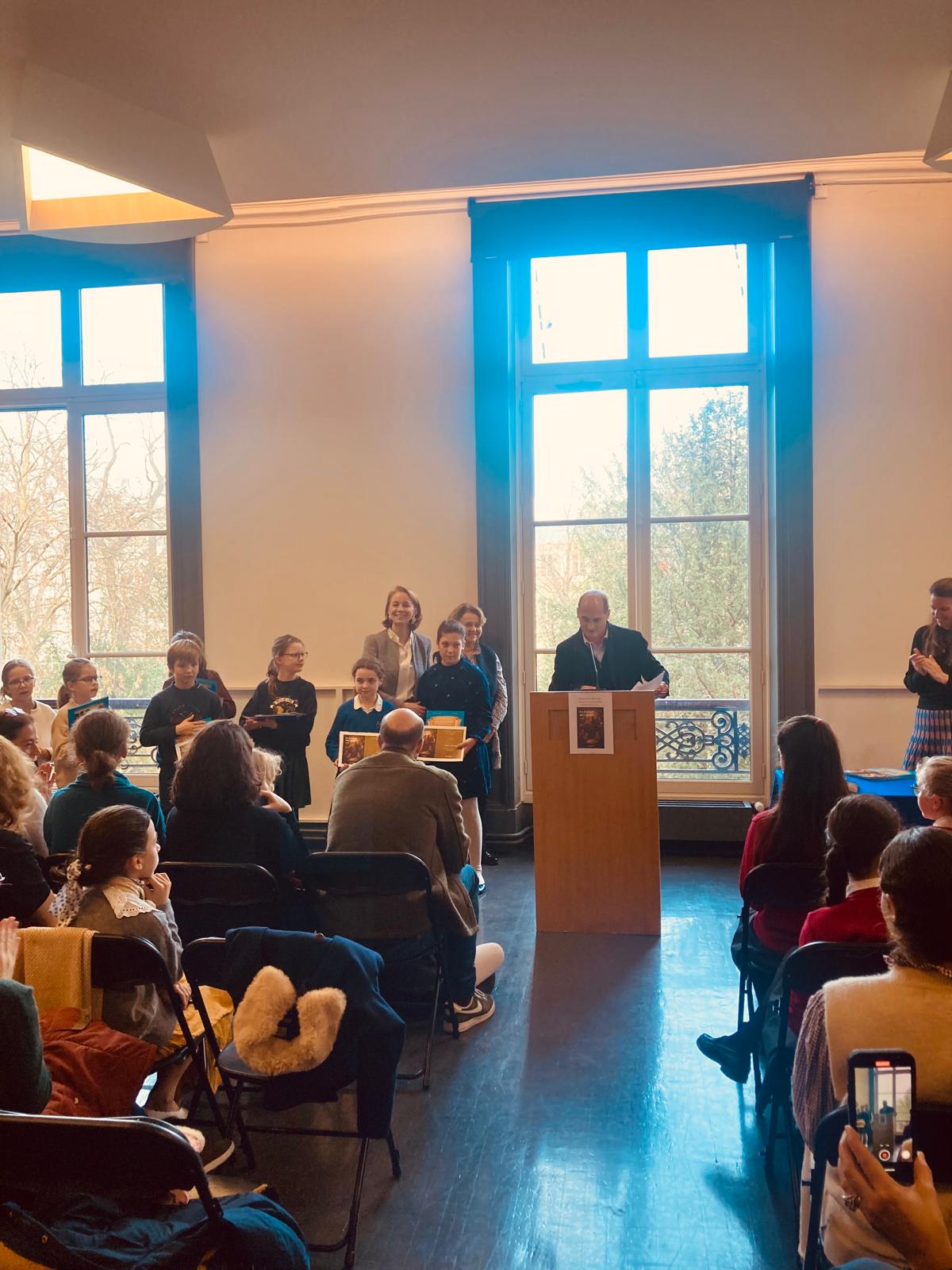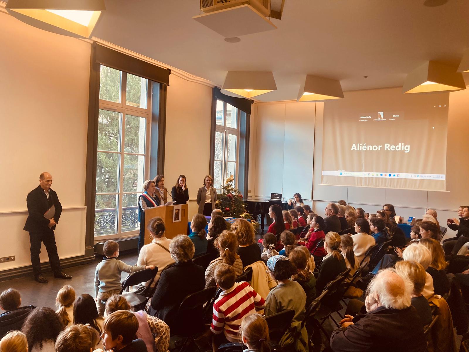 Des enfants venus d'Aix, des Pyrénées, de Versailles, de Paris, de Bruxelles sont venus accompagnés de leurs familles et professeurs. D'autres ont suivi la remise des prix par écrans interposés. L’ambiance était à la fête dans la salle, remplie d'une centaine de personnes !