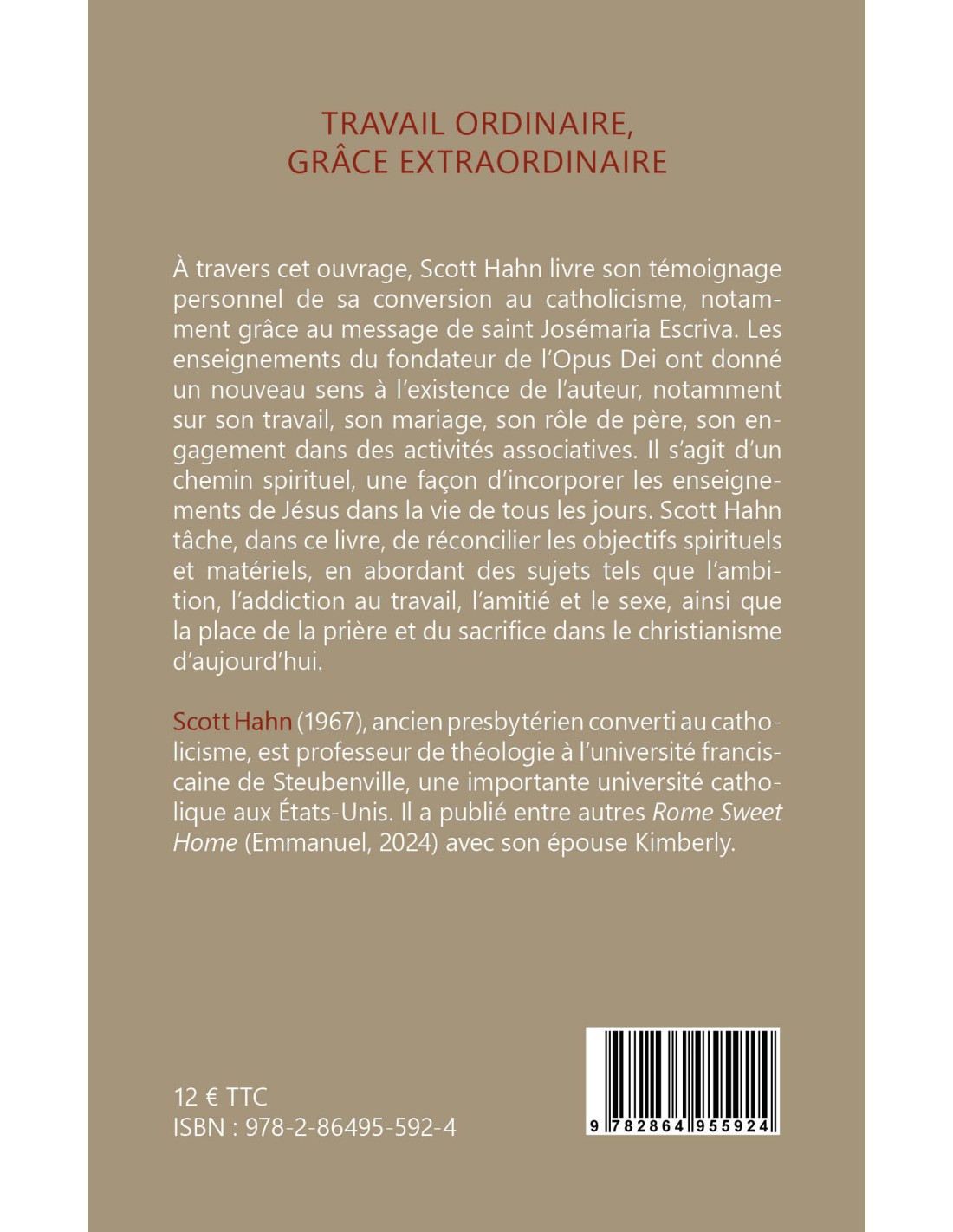 À travers cet ouvrage, Scott Hahn livre son témoignage personnel de sa conversion au catholicisme, notamment grâce au message de saint Josémaria Escriva. Les enseignements du fondateur de l’Opus Dei ont donné un nouveau sens à l’existence de l’auteur, notamment sur son travail, son mariage, son rôle de père, son engagement dans des activités associatives. Il s’agit d’un chemin spirituel, une façon d’incorporer les enseignements de Jésus dans la vie de tous les jours. Scott Hahn tâche, dans ce livre, de réconcilier les objectifs spirituels et matériels, en abordant des sujets tels que l’ambition, l’addiction au travail, l’amitié et le sexe, ainsi que la place de la prière et du sacrifice dans le christianisme d’aujourd’hui.